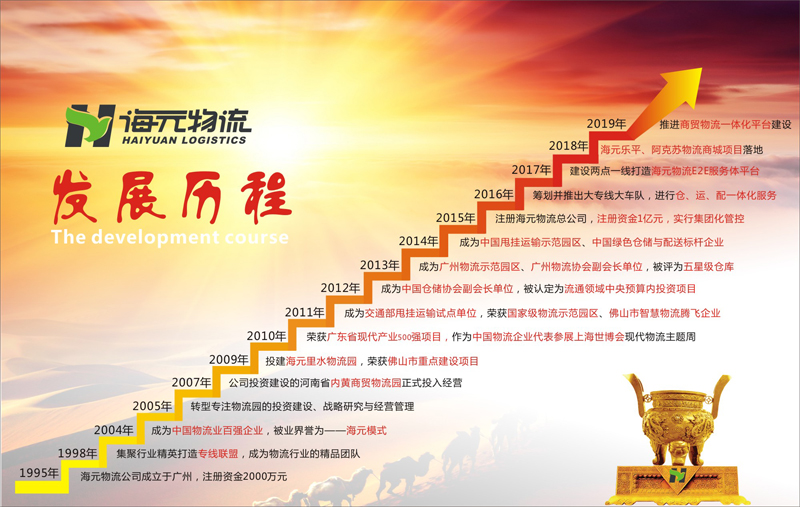 1995年:海元物流公司成立于广州,注册资金2000万元