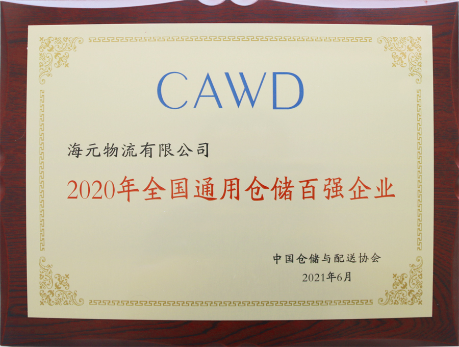 2021年6月24日,由中国仓储与配送协会主办的以“新理念、新格局、新目标——开启仓储现代化建设新征程”为主题的“第十六届中国仓储配送大会暨第八届中国(国际)绿色仓储与配送大会”在济南隆重召开。会议同期揭晓了“全国通用仓储企业100强企业”和“全国冷链仓储企业100强企业”,海元物流荣耀上榜,一举拿下两个“全国百强企业”称号。