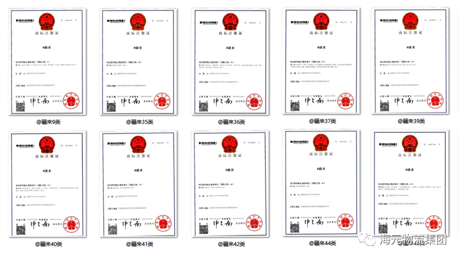 古时打仗讲究兵马未动粮草先行。现代商战也是一样,孔子曰:名不正,则言不顺;言不顺,则事不成。业务还没开展,先保护知识产权。因此,公司抢先注册了“@疆来”商标。“@疆来”是海元物流集团在新疆阿克苏打造占地5000多亩的海元物流商城过程中,根据项目运营需求而注册的优质品牌综合服务平台商标,专业从事国家商标法规定的商品及服务项目种类中的11大类110项服务。